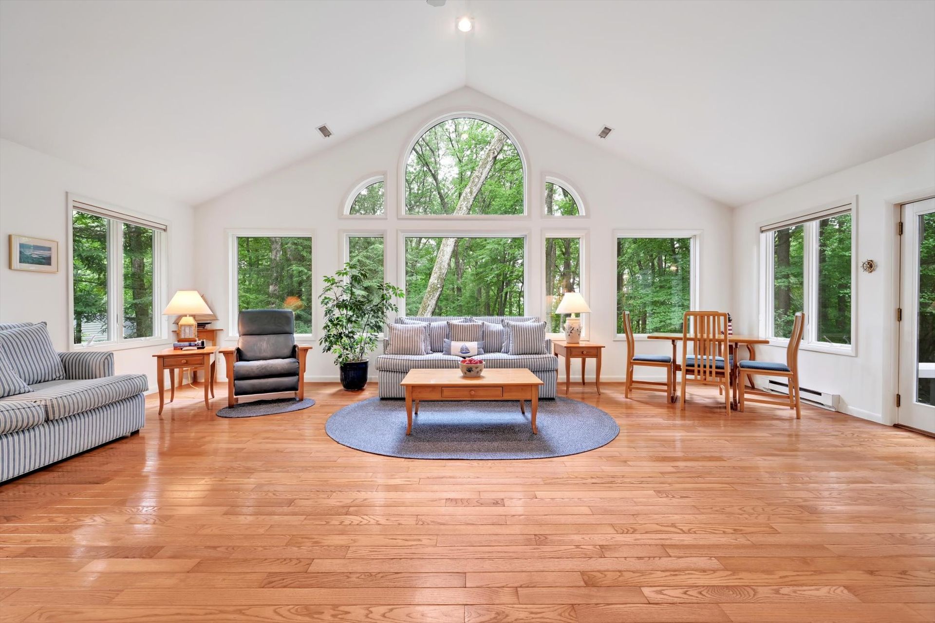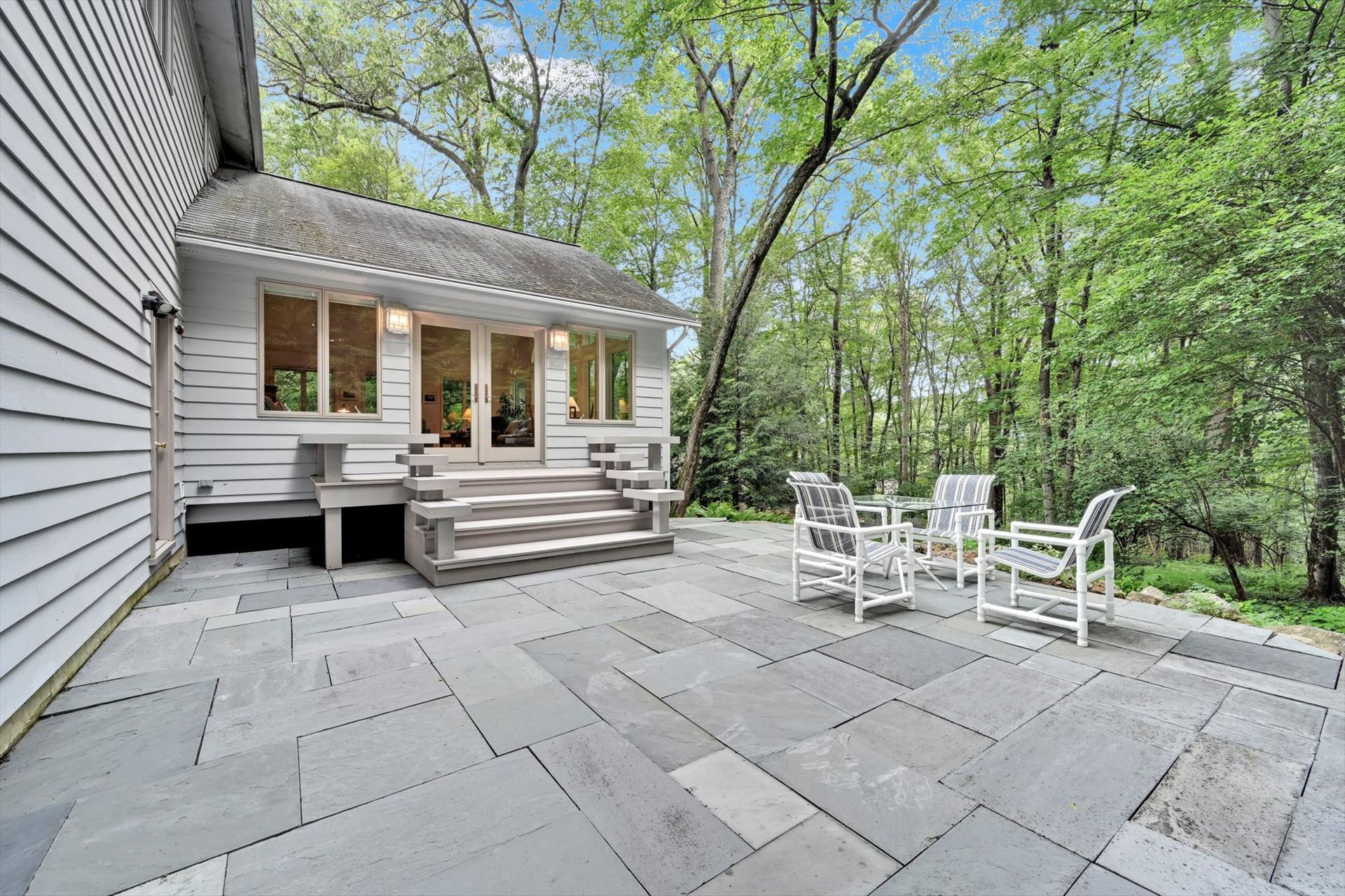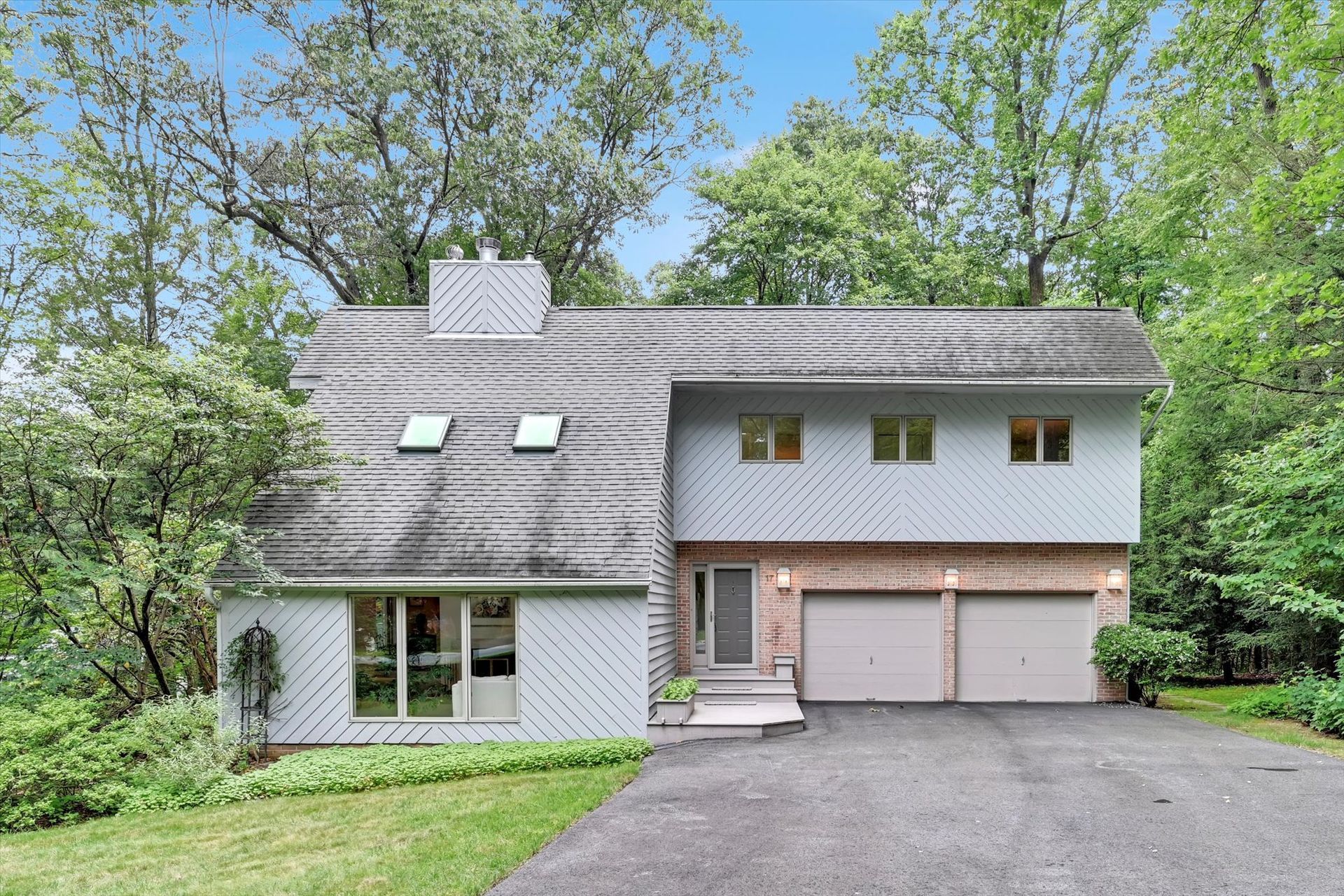 Tucked away on a private 1.24-acre wooded lot in the desirable Chinkapin Oaks community, this meticulously maintained 3-bedroom, 2.5-bath home offers 2,520 square feet of light-filled, contemporary living in the Oley Valley School District. Surrounded by a variety of mature trees and thoughtfully curated plantings, the setting is both peaceful and picturesque. Inside, you’ll find a harmonious blend of classic quality and contemporary design. Hardwood floors and plush carpet were recently installed, and replacement windows and skylights throughout bathe the home in natural light. The kitchen and bathrooms feature upgraded Corian countertops and replaced cabinetry, while Baldwin brass fixtures add timeless elegance throughout the home. The showstopping great room is the heart of the home, with vaulted ceilings, breathtaking wooded views, and access to a spacious Azek deck and PA Bluestone patio. Custom blinds offer privacy when needed, without compromising the views. A separate porch off the formal dining room provides yet another inviting outdoor space. The main level also features a convenient first-floor laundry room, a powder room, and interior access to an oversized two-car garage. Upstairs, generously sized bedrooms offer flexibility for guests, hobbies, or a home office, while the primary suite serves as a peaceful retreat with its own en-suite bath. A finished walkout basement expands your options for recreation, work, or storage. Two storage sheds, a new gutter system, and a radon mitigation system add to the home’s functionality. Aerial views highlight the lush, private lot—ideal for gardening, entertaining, or simply enjoying the tranquility of nature. With its clean lines, abundant natural light, and thoughtful upgrades, this home balances warmth and sophistication in a highly sought-after neighborhood.